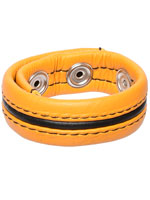 The new design with a black leather strip running through the middle of the yellow penis ring gives the leather ring a modern and elegant look. The folded edge of the ring not only ensures a clean look, but also perfect wearing comfort, as it prevents unpleasant cutting or chafing. The penis ring has high-quality stitching to ensure durability. The wide 18 mm contact surface was specially developed to ensure a pleasant blood congestion that supports your rock-hard erection.